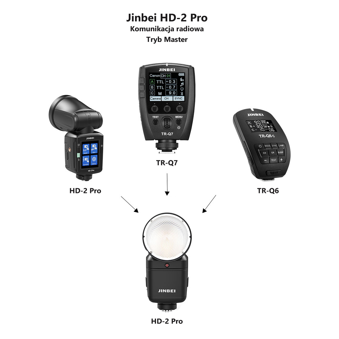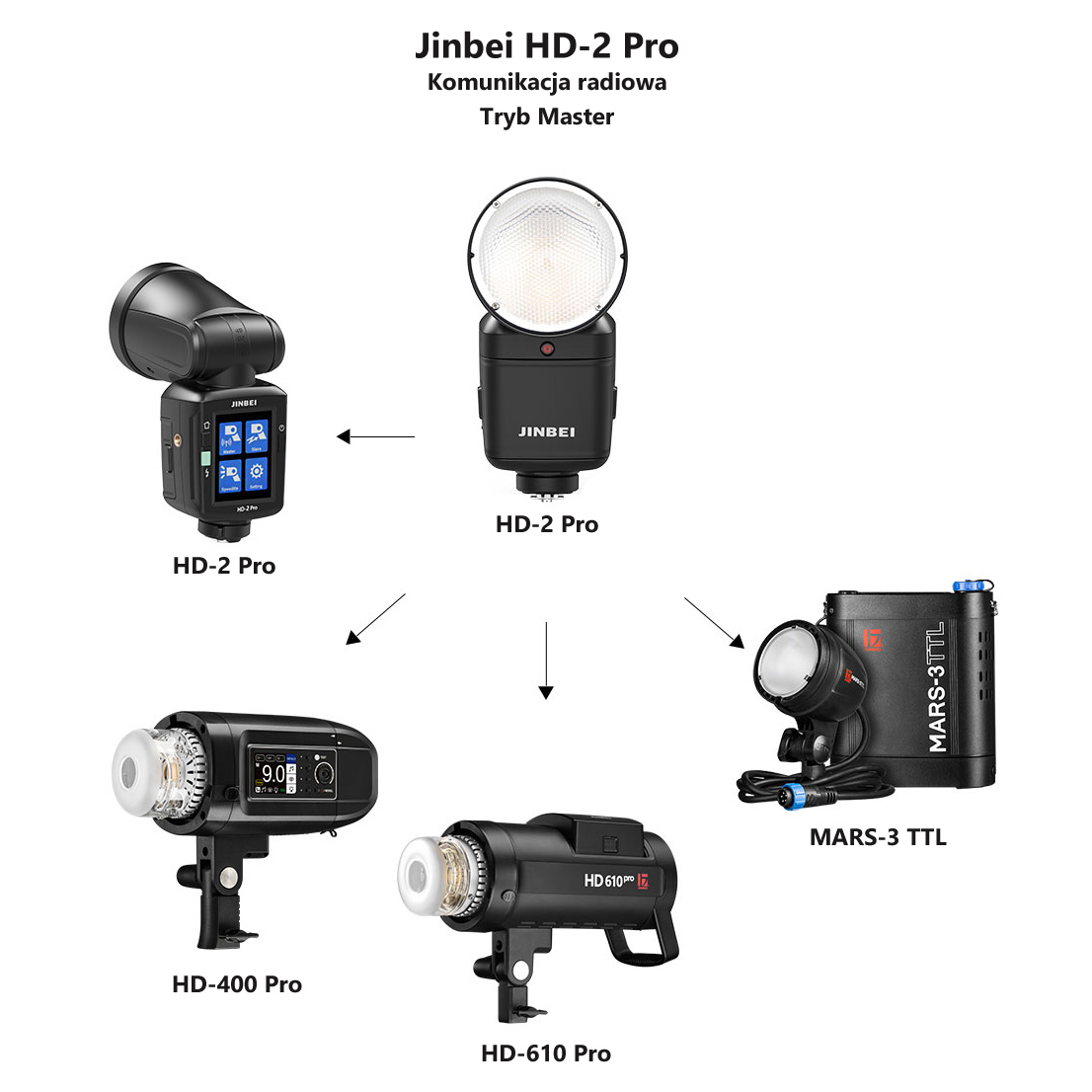 Jinbei HD-2Pro posiada możliwość łączenia się bezprzewodowego z innymi lampami Jinbei w trybie master lub slave. Tryb master pozwala na zdalne zarządzanie innymi lampami Jinbei.