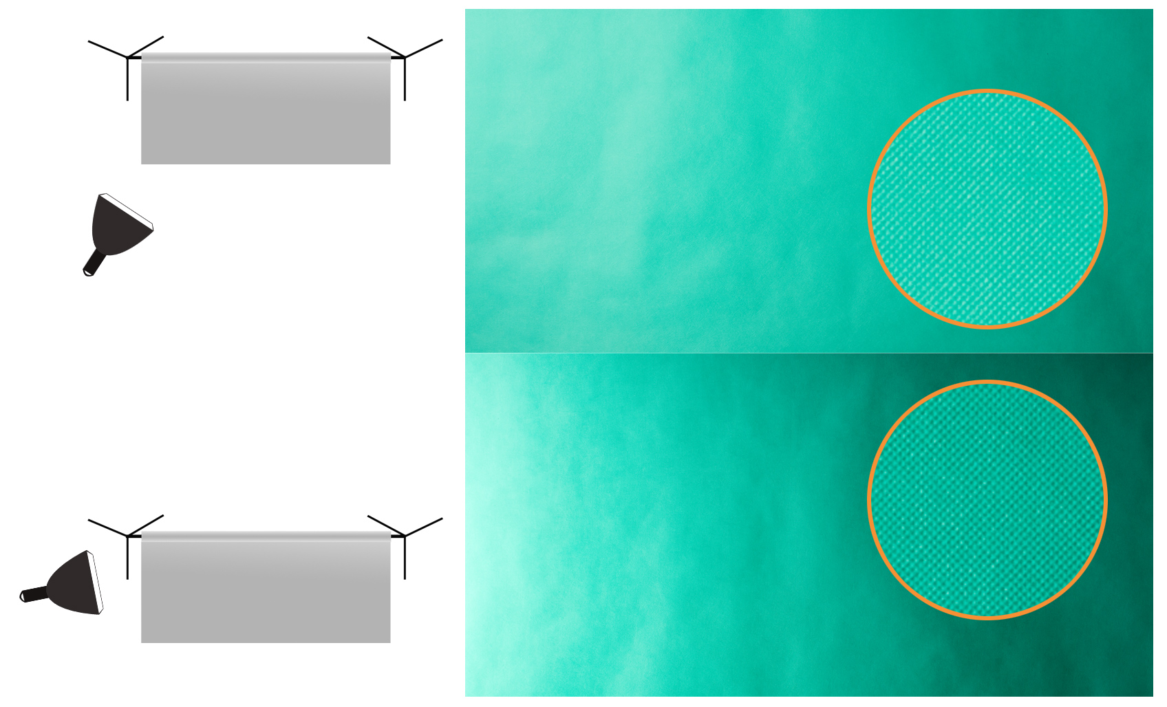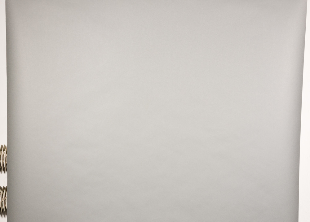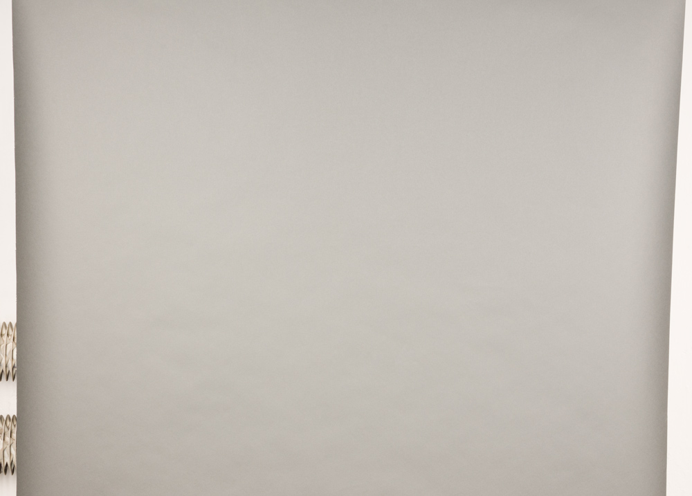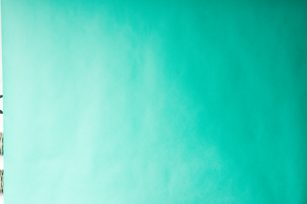 Gdyby ustawić symetrycznie oświetlenie z parasolkami odbijającymi to efekt można by zaakceptować ale… ze względu na fakt szerokiego kąta rozsyłanego światła zmuszony jestem również odrzucić ten typ modyfikatora. Nie da on bowiem wystarczającej kontroli nad światłem w małym studiu. Zatem na mojej specjalnej liście modyfikatorów do świecenia tła równomiernie zostały czasze (w tym również te ścięte do tła) oraz softboxy. Sprawdzę zatem jak poradzą sobie te akcesoria z tłem polipropylenowym oświetlając je z jednaj strony. Na tym etapie celowo używam tła polipropylenowgo aby uwidocznić niedoskonałości rozkładu światła.