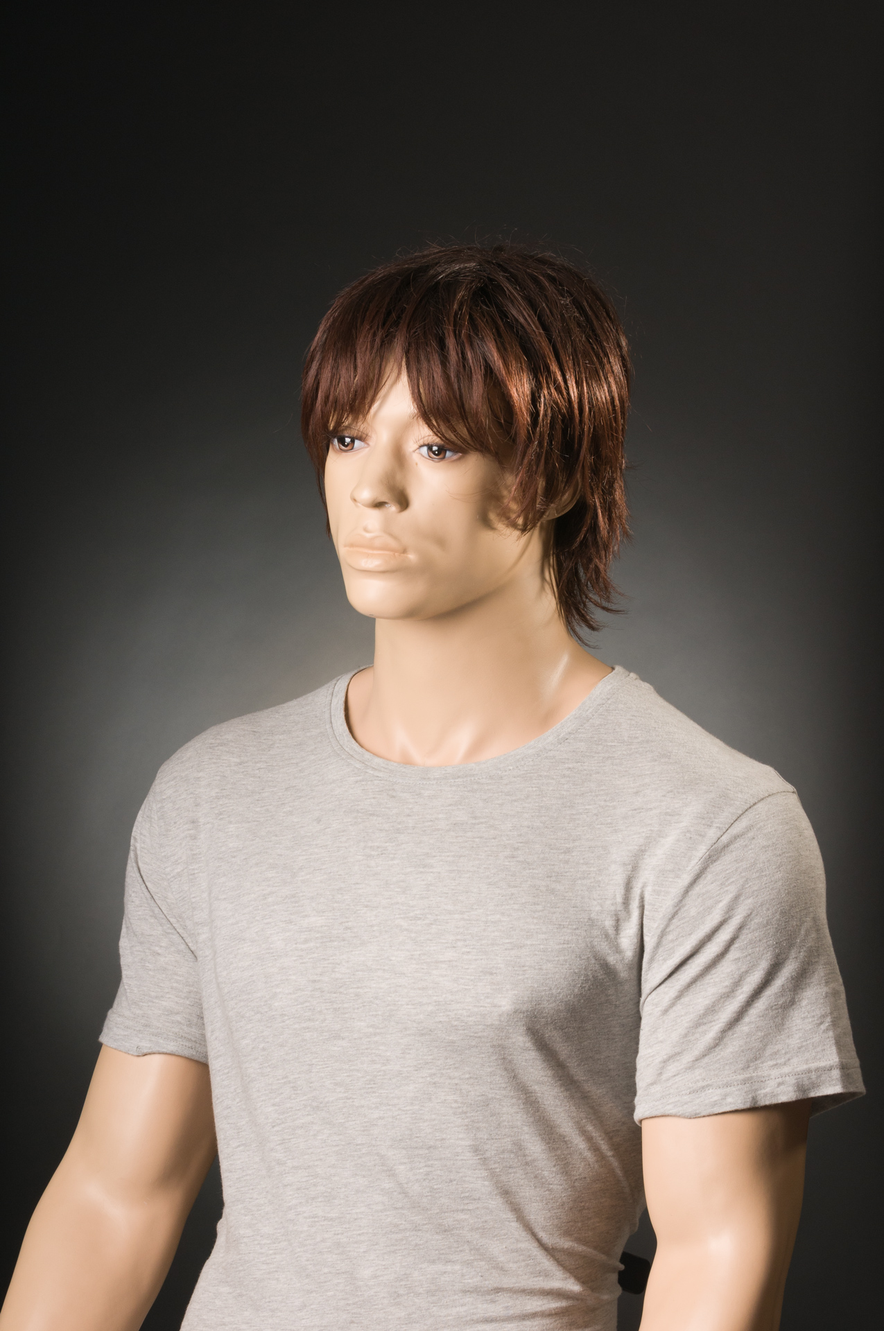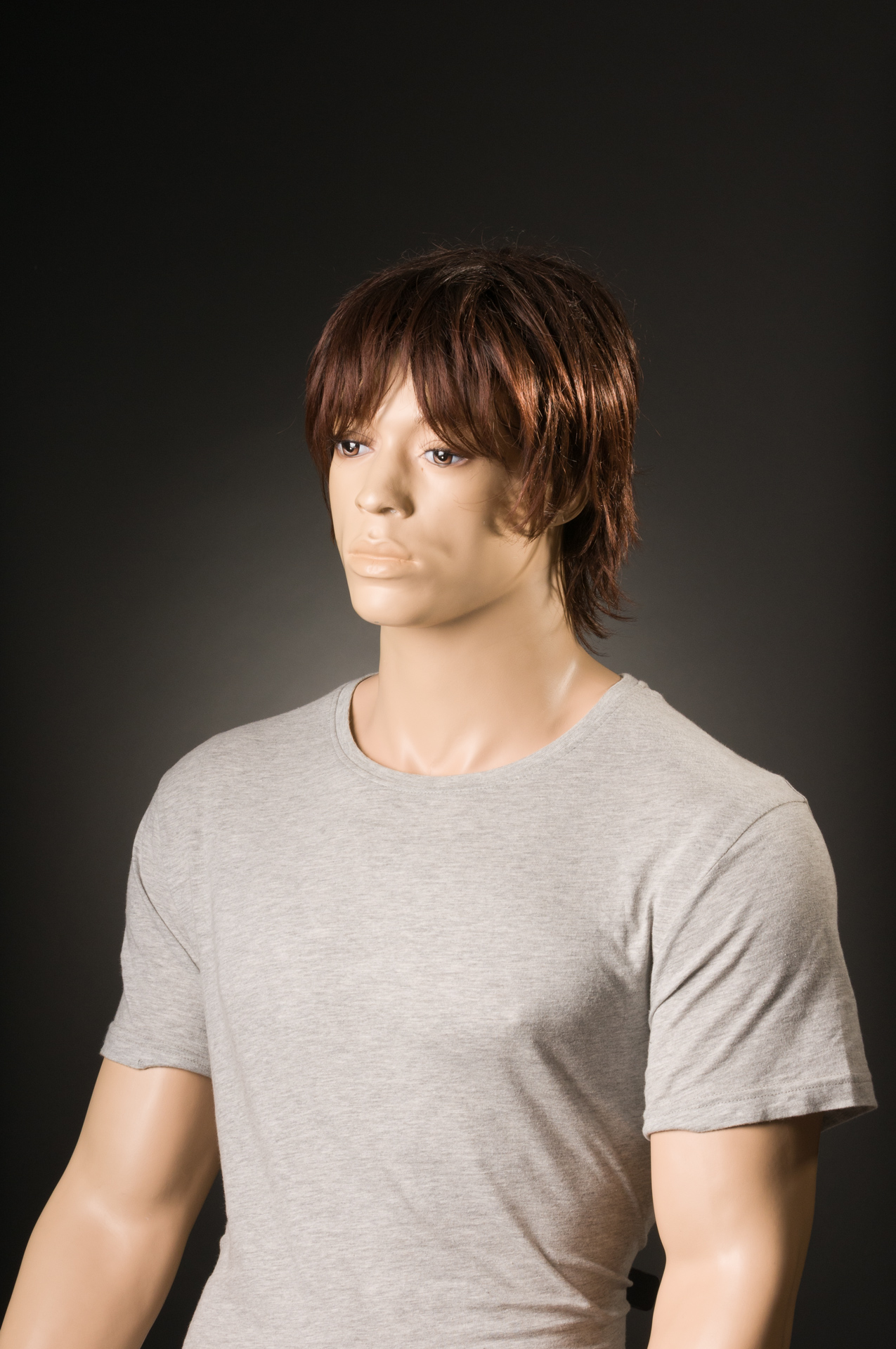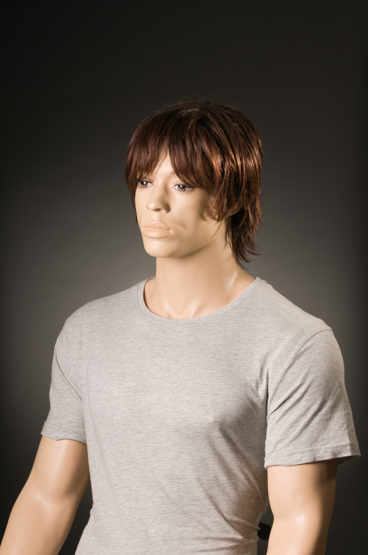 Przy wyborze tła do sesji nie zastanowiłem się do końca nad jego szerokością i wybrałem wąskie o wymiarze 1,35m x 5,5m. Wystarczające do portretowania jednej osoby ale biorąc pod uwagę odsunięcie obiektu od tła to musiałem dokładnie kadrować w taki sposób aby nie zarejestrować jego brzegów, co nie było takie proste. Dodatkowo brzegi kartonu mają tendencję do podwijania się co wprowadza efekt nierównomiernego natężenia światła. Wspominam o tym po to aby przed każdą sesją świadomie dobierać szerokość teł i lepiej niech one będą ciut szersze dla wygody pracy. Poniżej ostateczne zdjęcie z nieuczesanym „Heńkiem”.