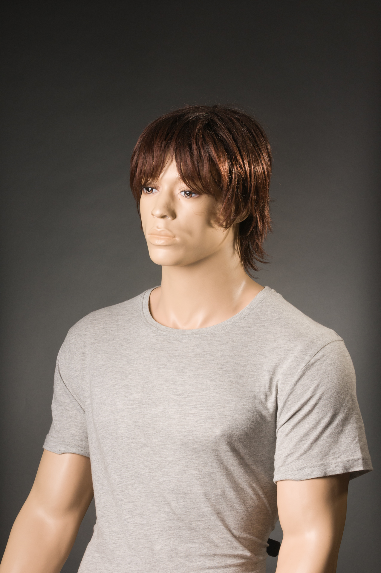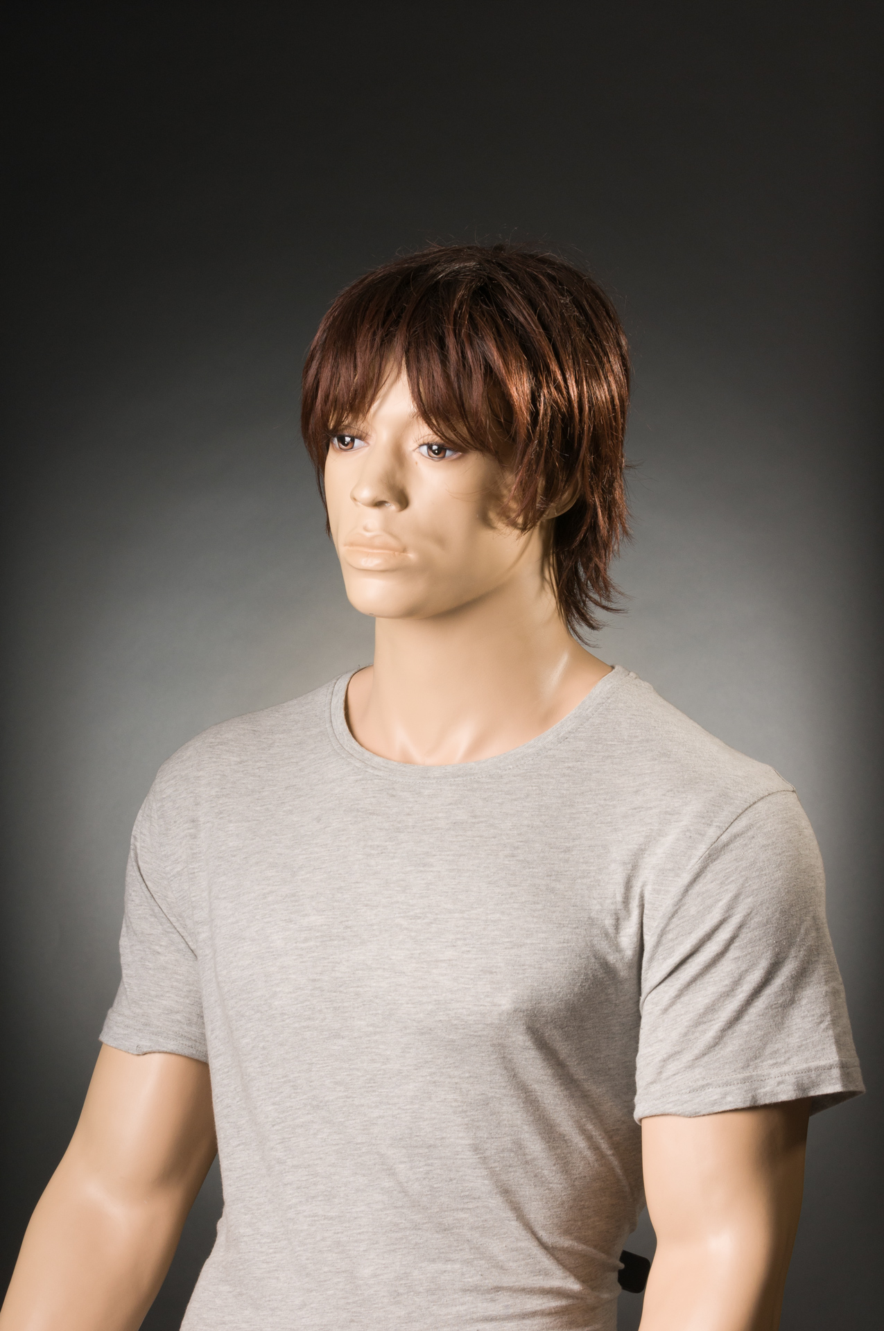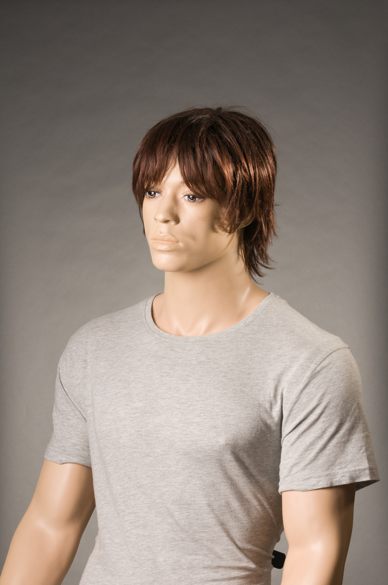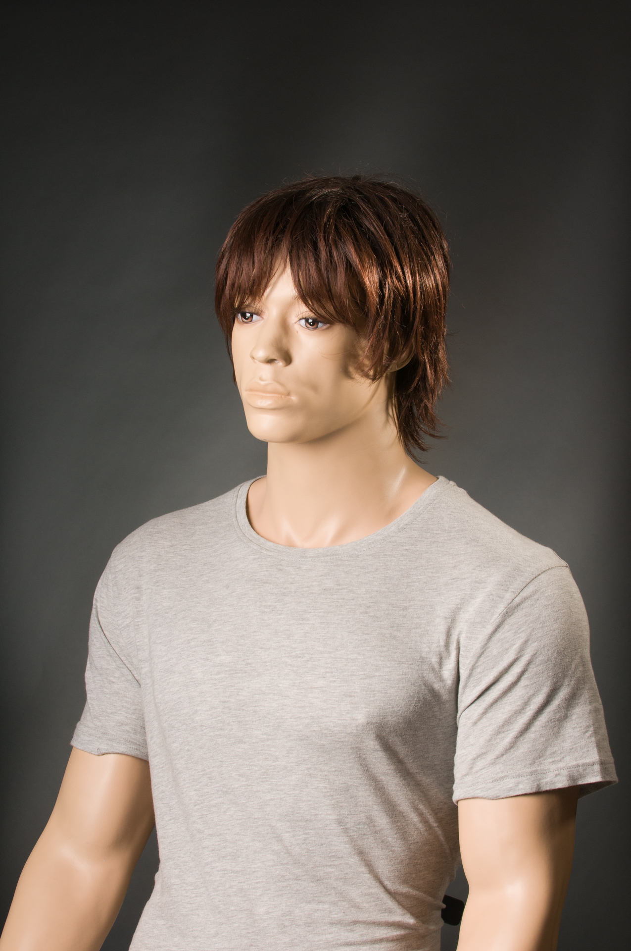 Przy wyborze tła do sesji nie zastanowiłem się do końca nad jego szerokością i wybrałem wąskie o wymiarze 1,35m x 5,5m. Wystarczające do portretowania jednej osoby ale biorąc pod uwagę odsunięcie obiektu od tła to musiałem dokładnie kadrować w taki sposób aby nie zarejestrować jego brzegów, co nie było takie proste. Dodatkowo brzegi kartonu mają tendencję do podwijania się co wprowadza efekt nierównomiernego natężenia światła. Wspominam o tym po to aby przed każdą sesją świadomie dobierać szerokość teł i lepiej niech one będą ciut szersze dla wygody pracy. Poniżej ostateczne zdjęcie z nieuczesanym „Heńkiem”.