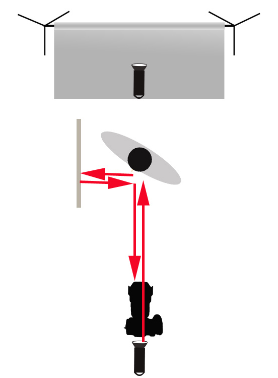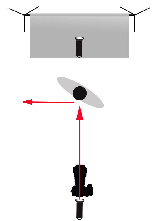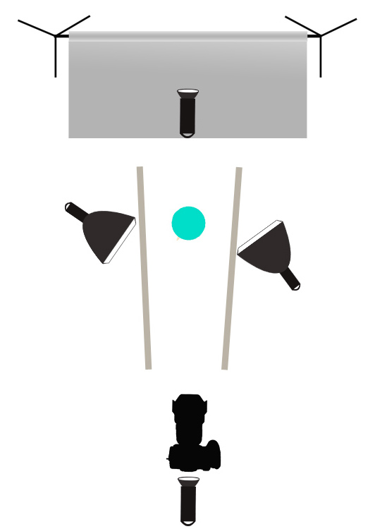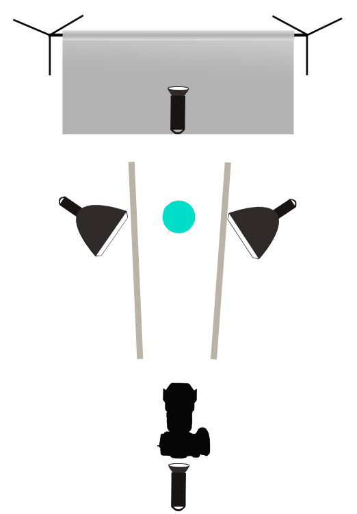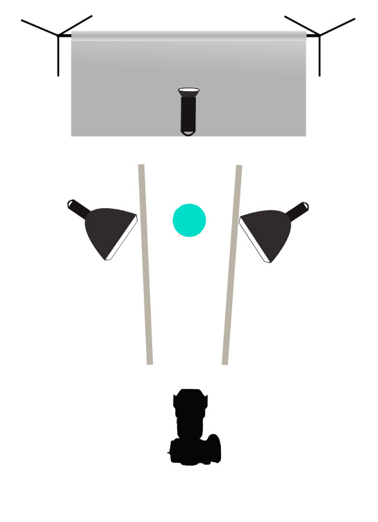 Prosty setup – jedna lampa na tło fotograficzne, jedna lampa na fotografowany przedmiot znajdująca się nad aparatem. Gdy obróciłem przedmiot światło odbite skierowało się na lewą stronę produktu (częściowo wróciło przez nierówną powierzchnię, ale na razie to pomińmy) i „uciekło”.