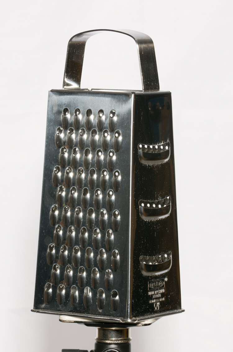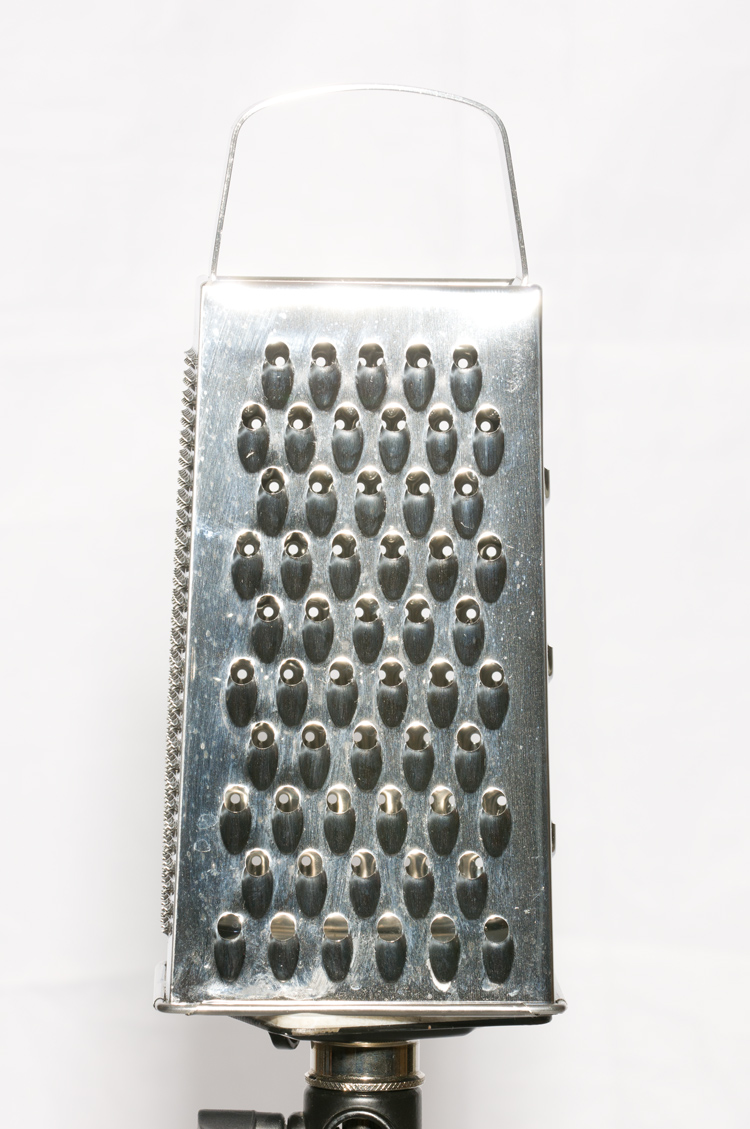 Ze względu na strukturę metalu z jakiego wykonany jest kątownik postanowiłem wykonać jeszcze raz zdjęcia, tym razem z metalem bardziej wypolerowanym w postaci tarki do warzyw. Poniżej trzy zdjęcia kolejno ukazujące odbicie światła w stronę matrycy, poza obrys matrycy i odbicie białych powierzchni.
