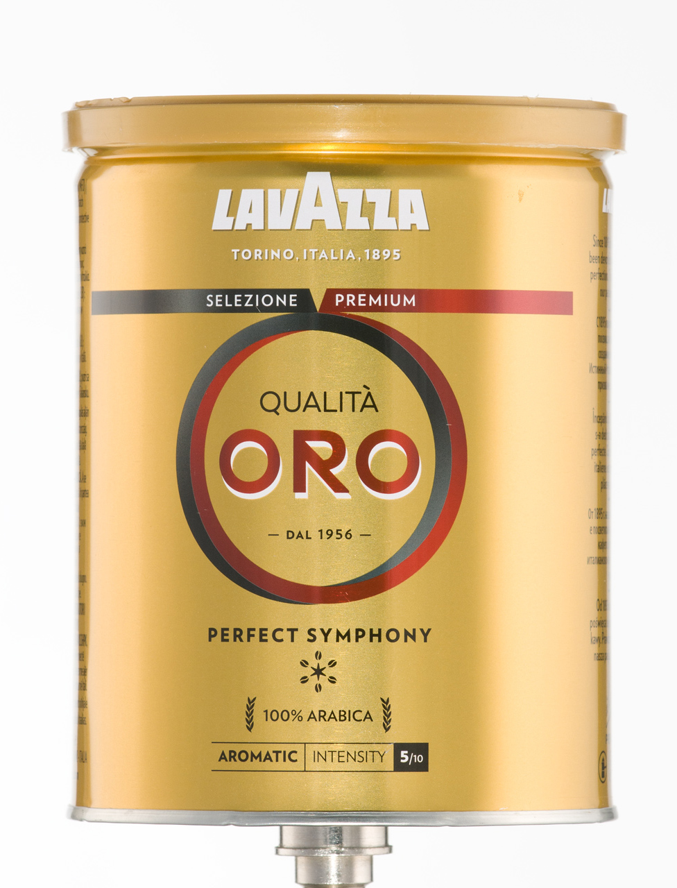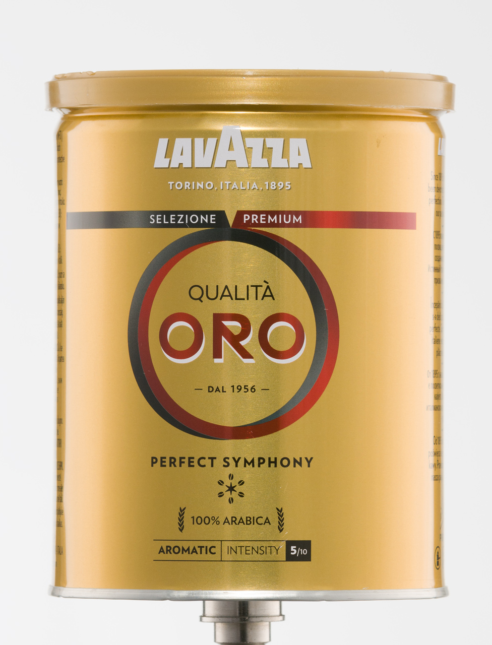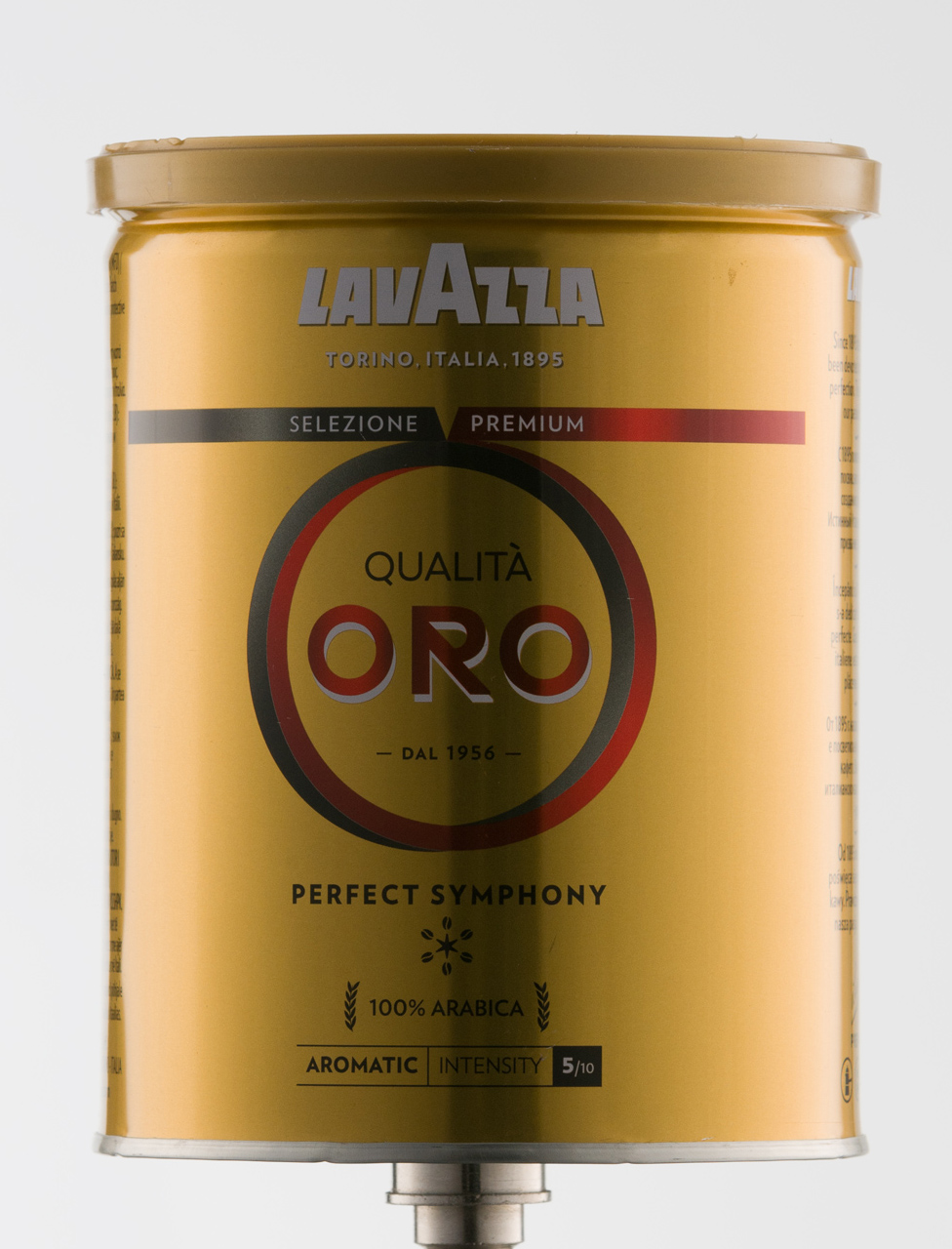 Spróbujmy jeszcze raz tym razem z puszką kawy przy ustawieniu światła jak w zdjęciach powyżej z małymi zmianami. Powierzchnia odbijająca po obu stronach produktu, dodatkowo aby brzegi puszki nie traciły kontrastu od blisko stojącego tła ustawiłem dwie czarne flagi (pomiędzy płaszczyzną odbijającą, a tłem). To efekt końcowy najprostszego sposobu na świecenie produktów lśniących.