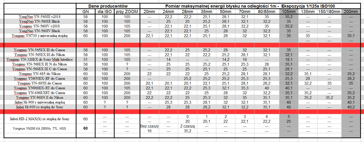 Jak widać, różnica między marketingowym GN 60 a rzeczywistością może wynosić nawet 2 stopnie przysłony. Wybierając lampę, warto patrzeć na realne osiągi, a nie na rekordy przy zoomie 200mm.
