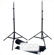 Statywy będą niezbędnym wsparciem dla lamp studyjnych. Statyw oświetleniowy jest dość wszechstronnym przyrządem, możemy go wykorzystywać również do ustawiania płaszczyzn odbijających. Tu zasada jest prosta: im większa lampa tym potężniejszy powinniśmy mieć statyw. Wzrost gabarytów lampy związany jest zwykle ze wzrostem jej mocy. Zatem w przypadku naszego domowego studia, gdzie nie potrzebujemy dużych lamp, nie będzie to stanowić problemu. Dobry i solidny statyw oświetleniowy to koszt w wysokości 70zł.
