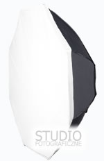 Zbyt ostre światło spowoduje, że twarz stanie się płaska, bez wyrazu, z nieładnymi cieniami, mocno odcinającymi się od wyjątkowo jasnych partii. Charakterystyczne cechy fizjonomii najlepiej eksponuje światło miękkie, stonowane. By osiągnąć taki efekt stosuje się różnego rodzaju powierzchnie dyfuzyjne, które rozpraszają i zmiękczają światło. Jeżeli użyjemy softboxu to oprócz ładnie rozproszonego światła uzyskamy możliwość skierowania go dokładnie tam gdzie chcemy. Między innymi z tego powodu softboxy są jednym z najpopularniejszych modyfikatorów oświetlenia. Im większy softbox tym większa będzie miękkość światła jakie otrzymamy. Z tego też powodu postanowiliśmy wyposażyć nasze domowe studio właśnie w softbox. Jako, że wybrana wcześniej lampa ma mocowanie bowens, dobranie odpowiedniego kształtu i rozmiaru modyfikatora będzie łatwe. Tańszą alternatywą byłaby parasolka rozpraszająca. Różnica między nią a softboxem polega na tym, że parasolka zmiękcza światło ale go nie ukierunkowuje, przez co znaczna jego ilość odbija się od wszystkich ścian. Więcej o samych modyfikatorach pisaliśmy…